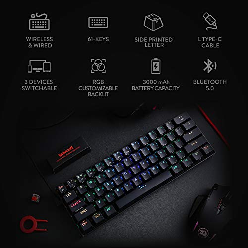 Ultra-compact design: With just 61 keys, this tenkeyless (TKL) keyboard frees up valuable desk space for epic mouse swipes. Perfect for FPS pros who demand peak performance (size: 11.5 x 3.9 x 1.4 inches).
