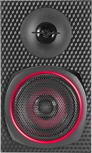 Stunning carbon-look satellites and subwoofer.